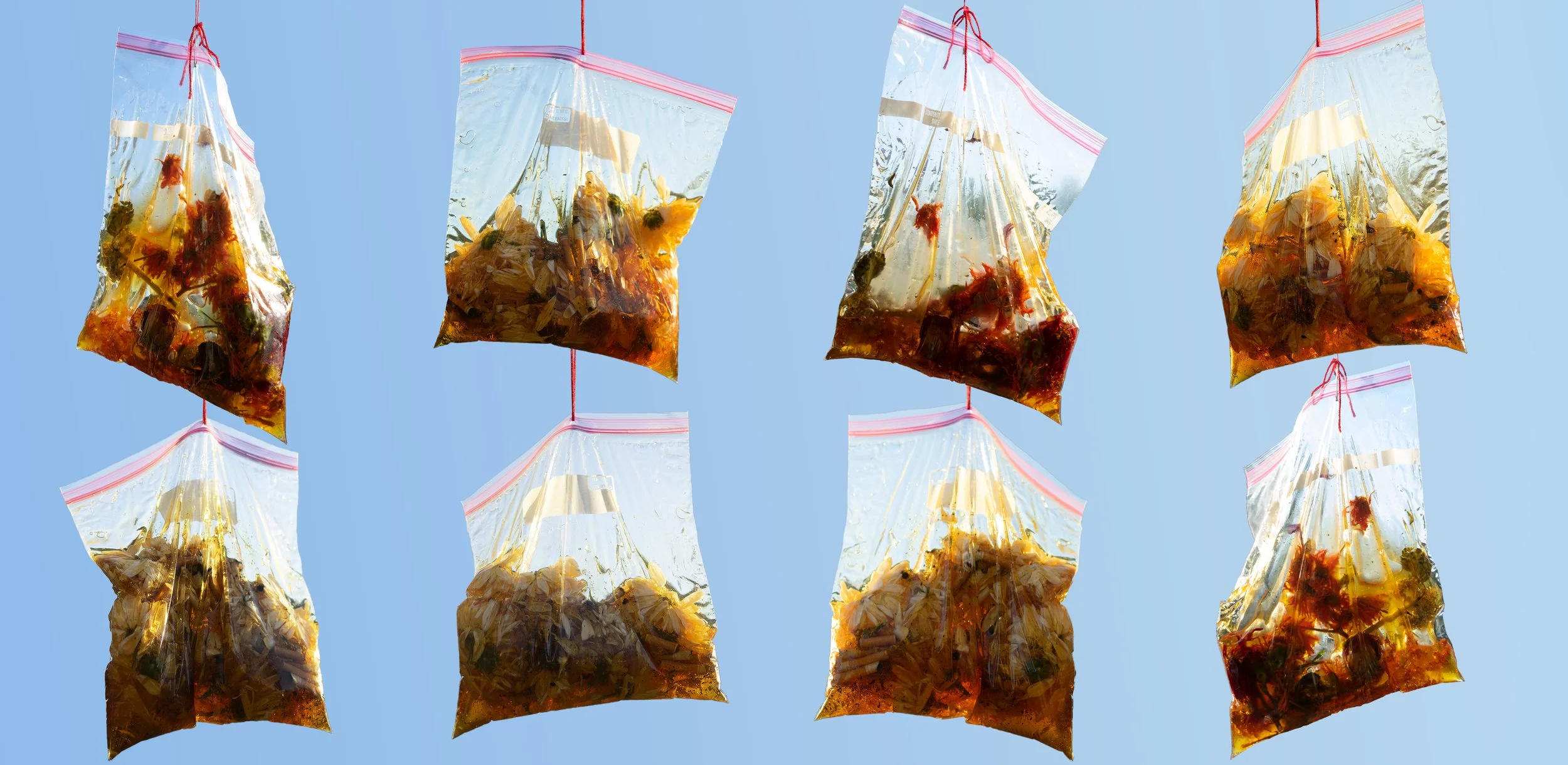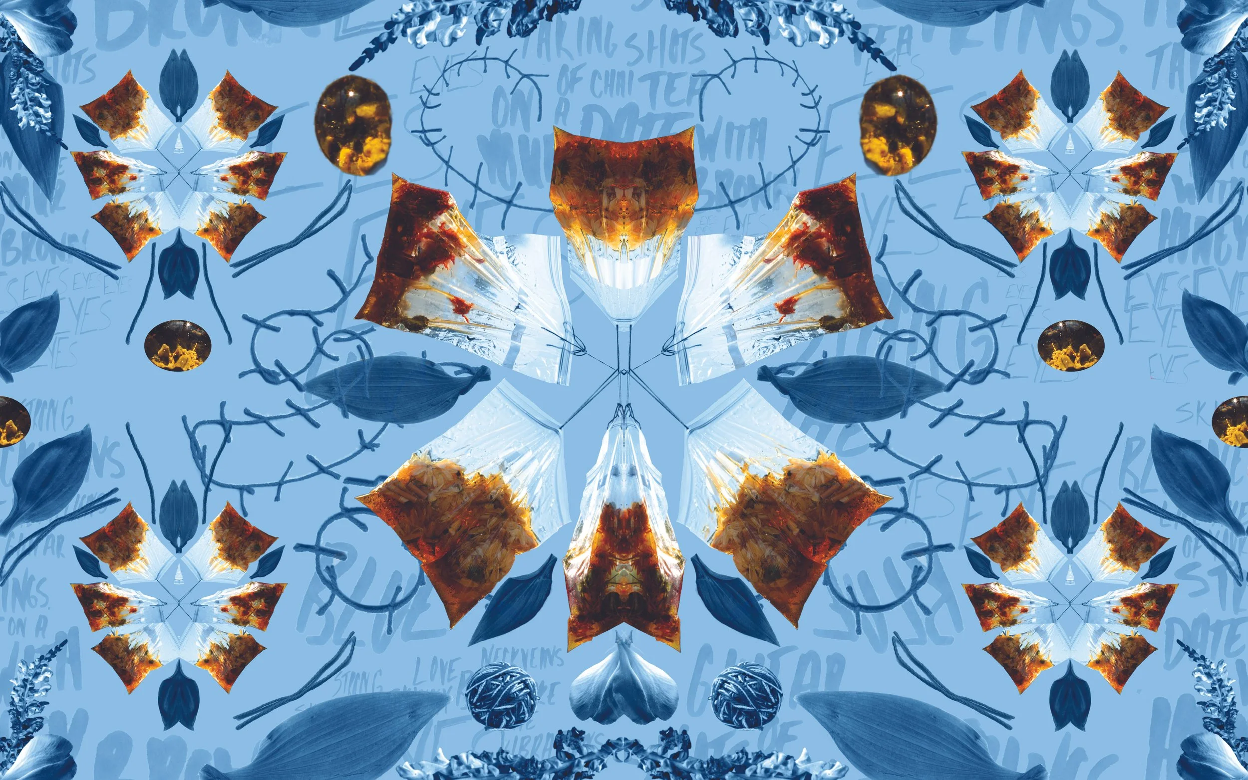 The manifestation of “Fam”, She Exclaimed emblemizes the family of people I met during my two-year stay in Cincinnati. To commemorate their impact in my life and relationship, I collected trace or residual items (cigarette butts, flower petals, bottlecaps etc) from these people in moments where I felt most connected. The items were put into individual bags with names for the corresponding individual and filled with honey to illustrate their sweetness. While “Fam”, She Exclaimed acts as a backdrop, the photographs titled, Somebody’s Somebody and Shy of a Bundle, protrude outward. This was done to represent how I prioritized my partner over others and how thin the distance is for me and others to slip away into the background of new relationships. The placement of these images over the wallpaper implies hierarchy and generates a stark contrast between not only colour but the subject matter. The characteristic of clarity, in black and white photography, is utilized ironically here to contradict the frustrations of non-proximal relations, where no decision is black and white, clear-cut, or simple. -